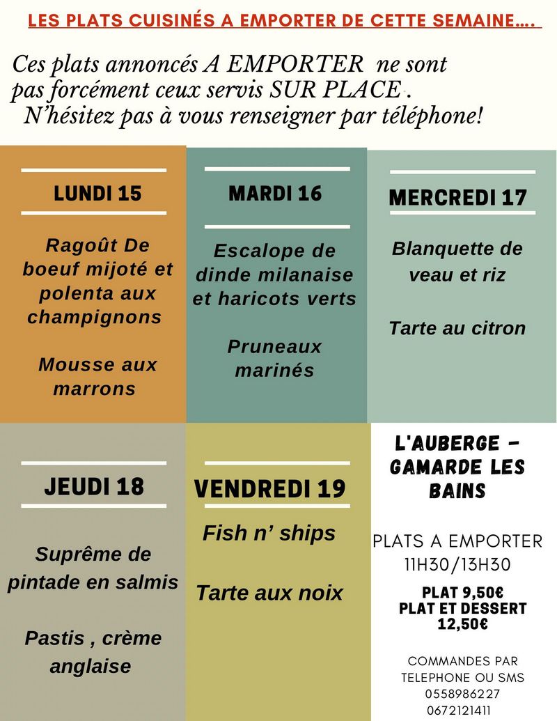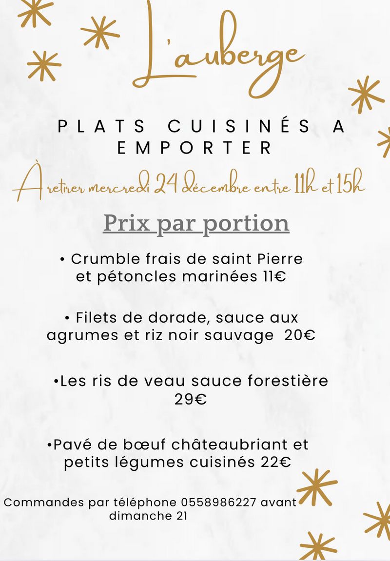 - A retirer à l'Auberge de 11h30 à 13h30 -