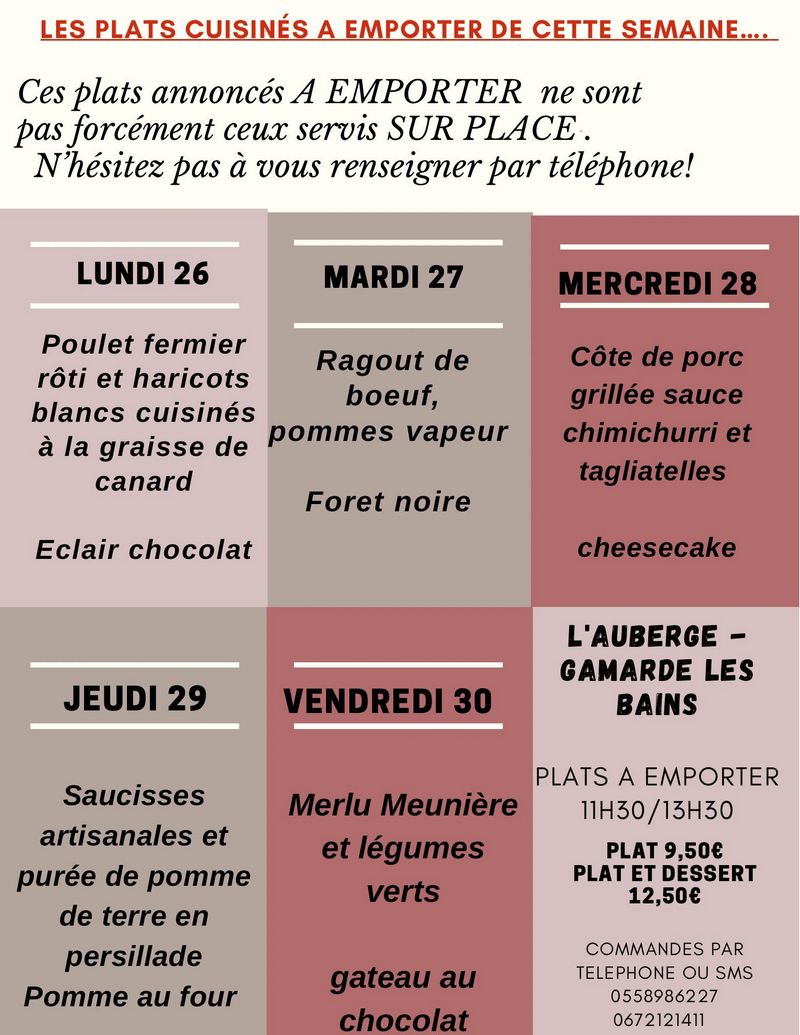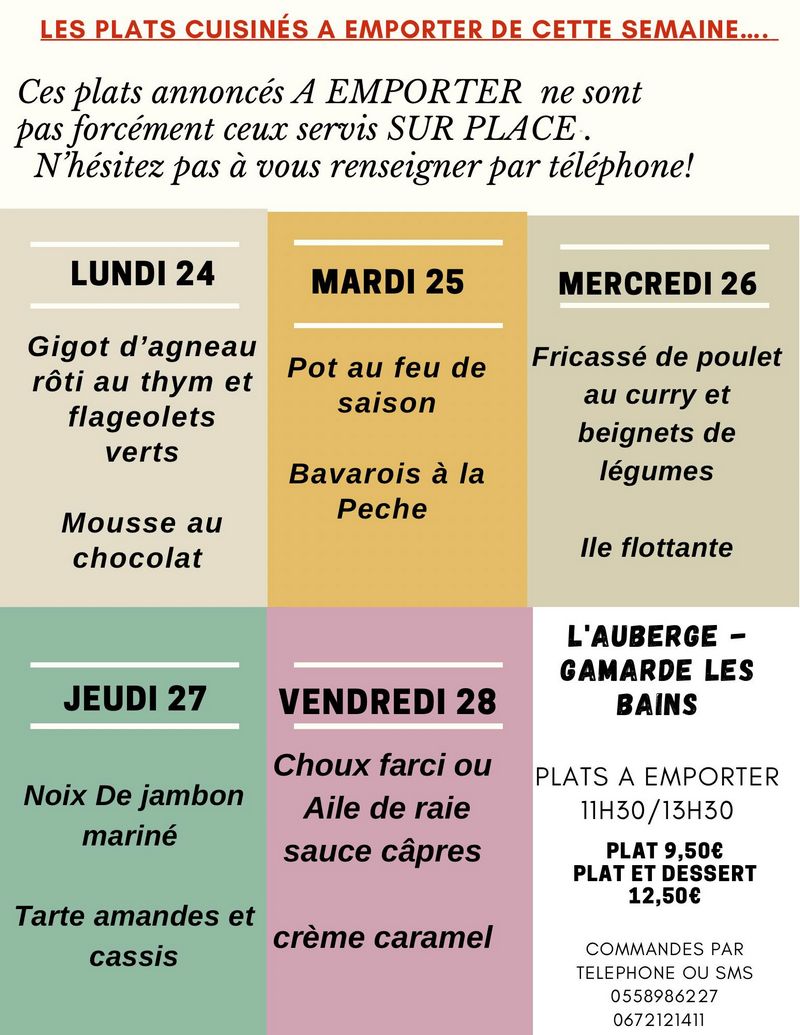 - A retirer à l'Auberge de 11h30 à 13h30 -